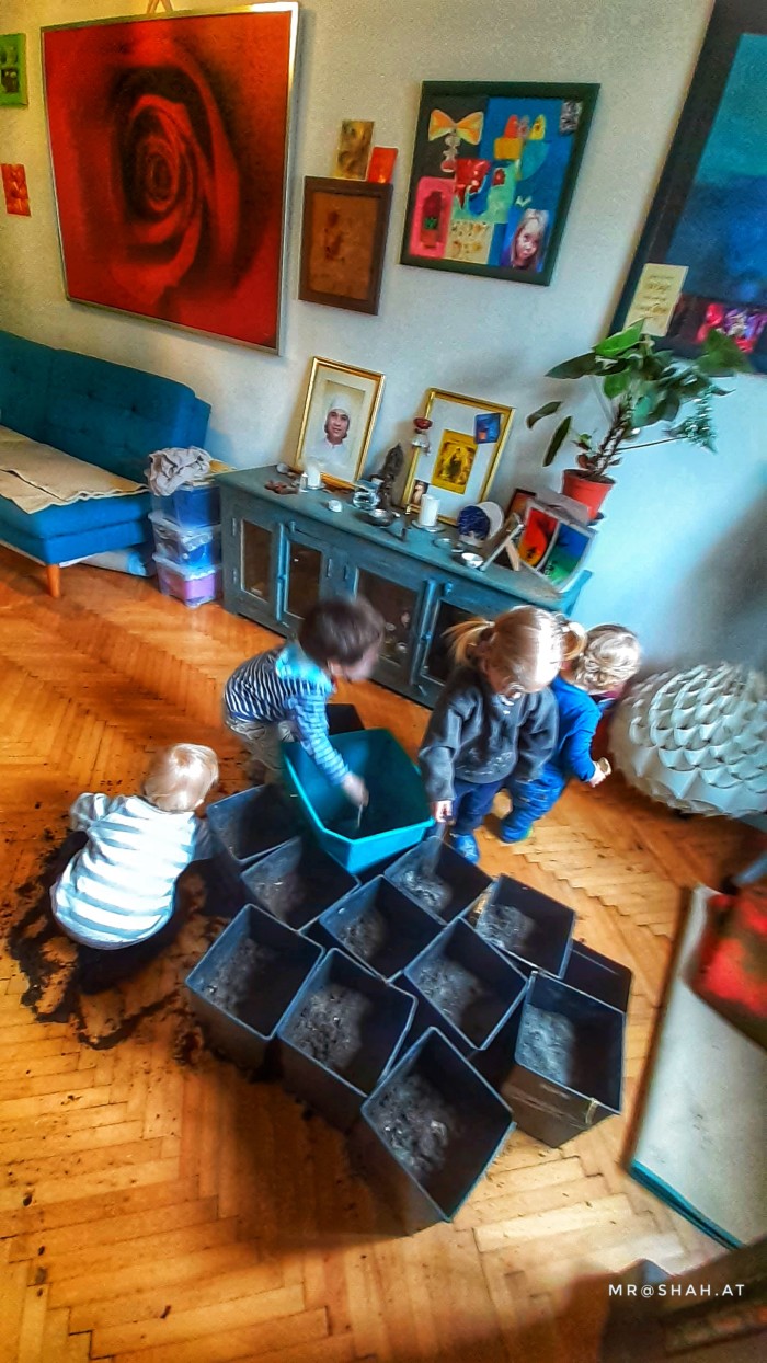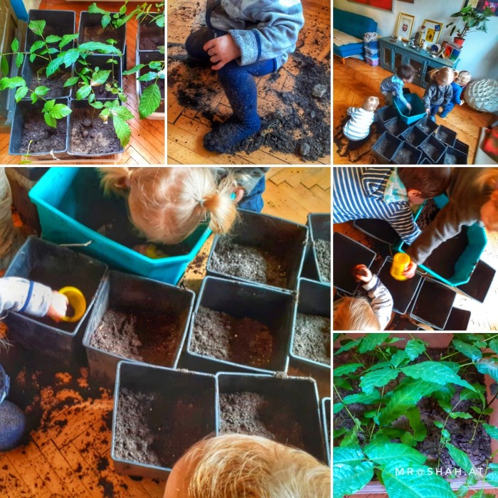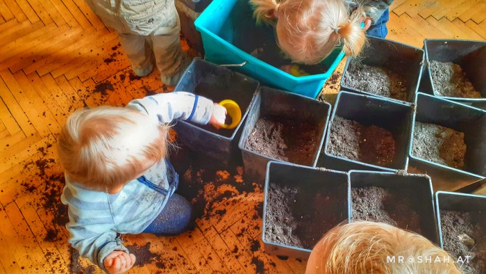 Die Döblinge gehen nicht nur jeden Tag bei Wind und Wetter raus, wir garteln nicht nur, nein. Der Kreislauf der Natur ist ein wesentlicher und alltäglicher Bestandteil unserer Ausflüge. Wenn im Herbst die Nüsse fallen, sammeln wir sie ein, machen aus Kastanien ein „Kastanienbad“ und setzen Walnüsse zur Auspflanzung im neuen Jahr ein.